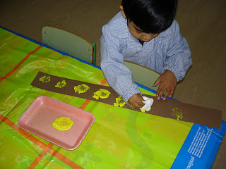 Las manzanas del árbol las hacemos con nuestra huella del dedo y la base de la corona con estampaciones con bolas de papel.