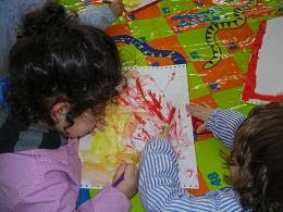 Llegó el baile y rápidamente a la clase para tomar el chocolate con bizcochos. Aquí ya muchas de las cintas de colores se habían quedado en el suelo del patio.
