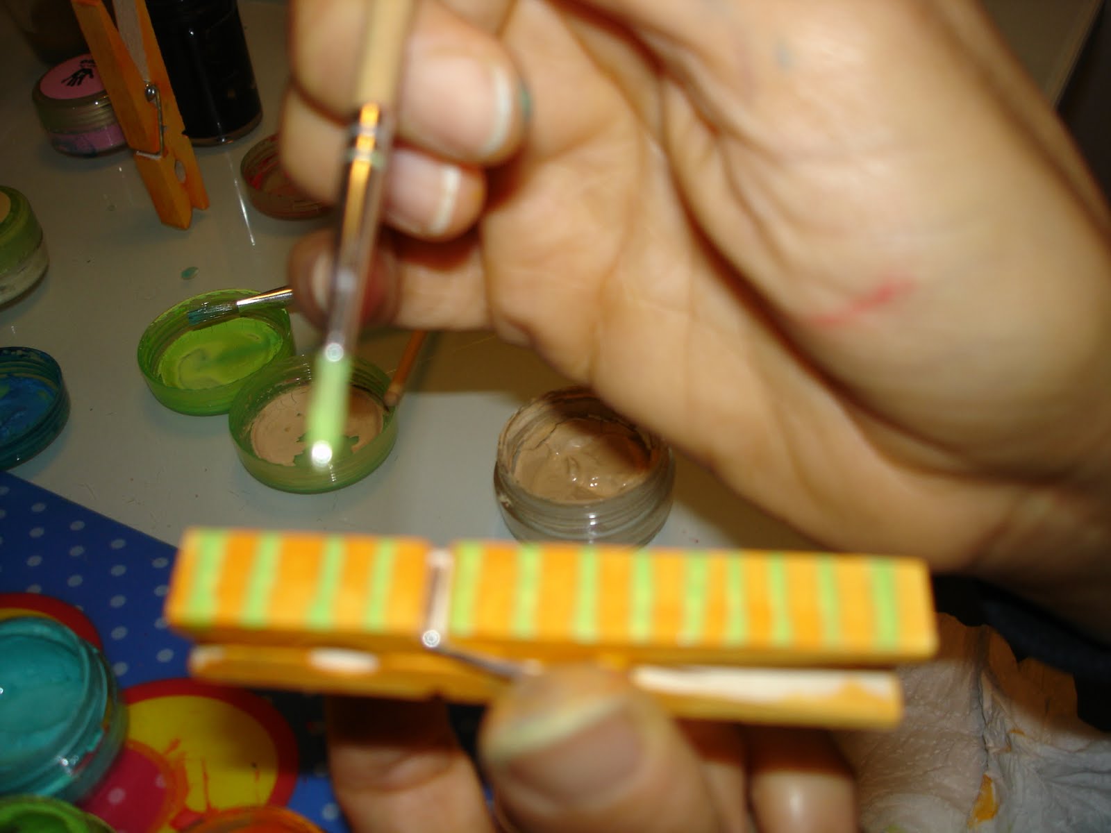Las fotos y carteles las hemos sujetado al árbol con pinzas que hemos decorado.