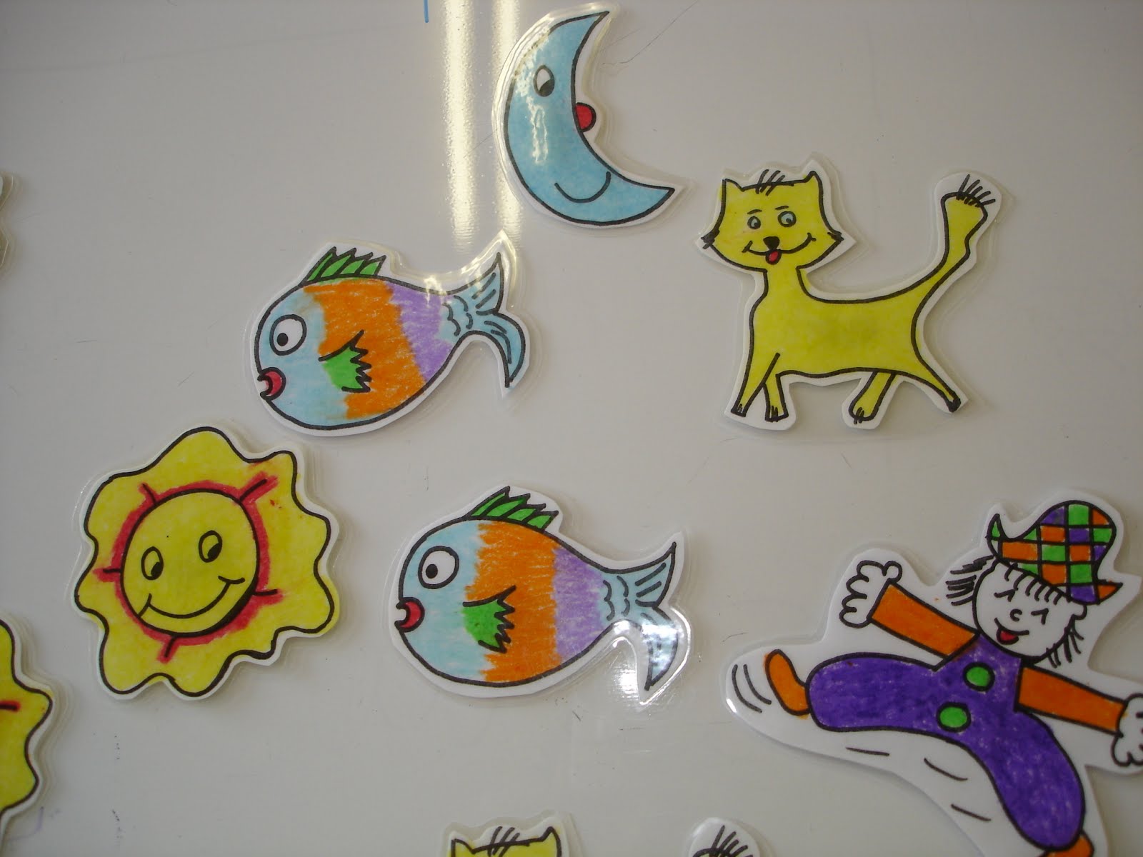Me gusta mucho tener tiras colgando de las ventanas,a modo de cortina, donde colocar las imágenes para decorar la clase.