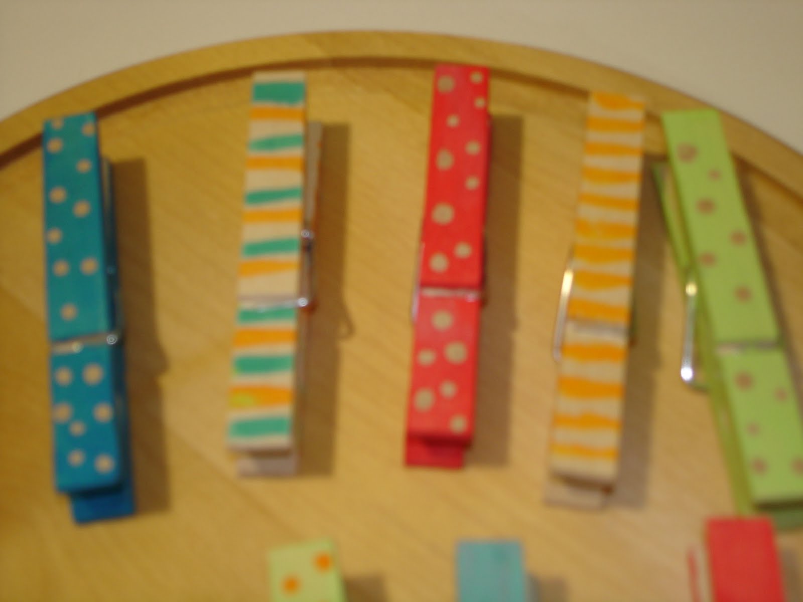 Las fotos y carteles las hemos sujetado al árbol con pinzas que hemos decorado.